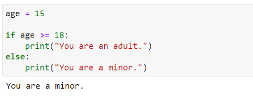 In this example, if the condition `age >= 18` is false (which it is since `age` is `15`), the else block will be executed, printing "You are a minor."