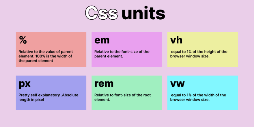 - Percentage (%) - Represents a percentage of the parent element's size or the available space.